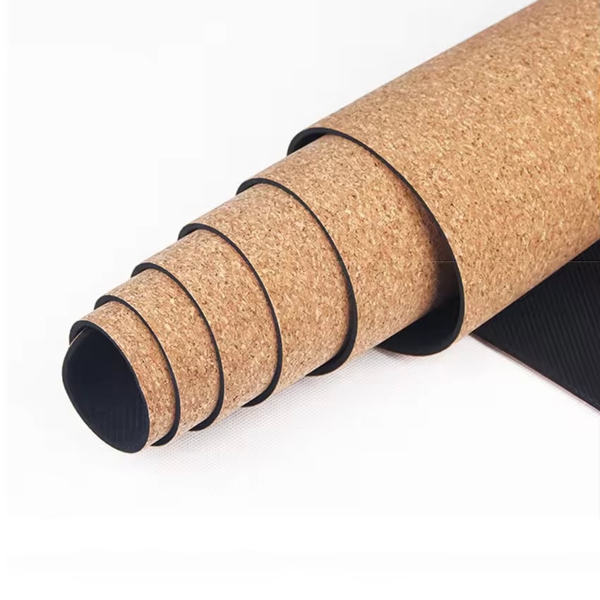 Sustainable cork surface with natural rubber base—perfect for studios, fitness brands, and large-scale OEM customization.
